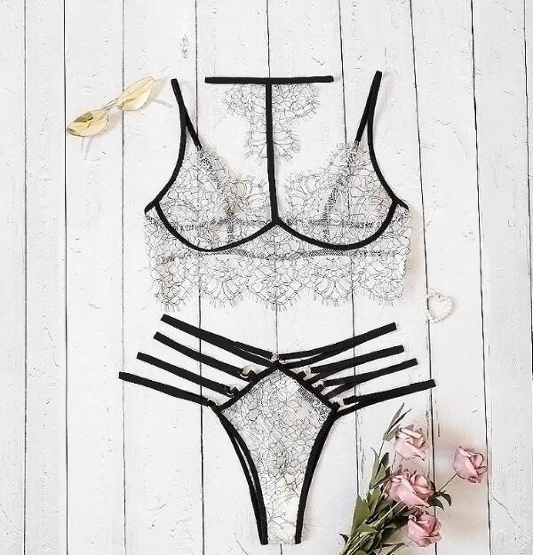 Sexy Lingerie Sexy Halter Binding Three-Point Lace See-through Suit