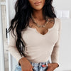 Sexy Low Cut Shirts Women Solid Sport Shirt Solid Color High Elastic Gym Workout Top Running Breathable Long sleeve Blouse Blusa