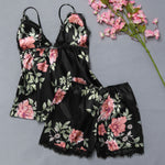 Sexy Pijama Women Night Dress Print Flower Lace V-neck Soft Silk Satin Sleepwear Lingerie Temptation Soft Sexy Women Homewear