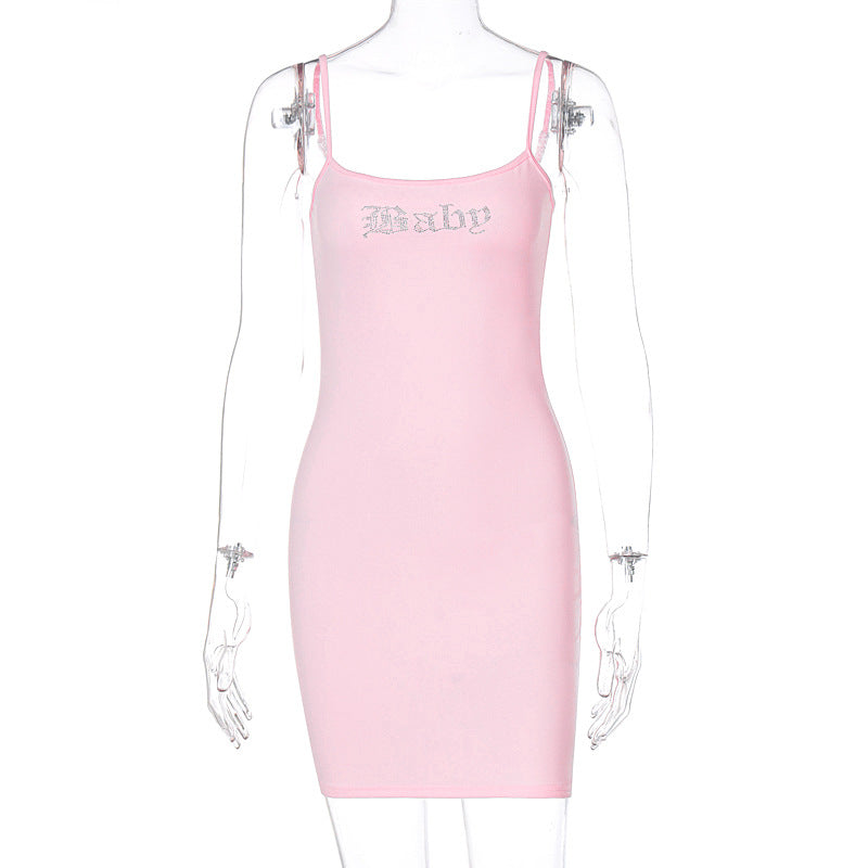 Sexy Strap Dress New Letter Rhinestone Slim Fit Slimming Elegant Dress