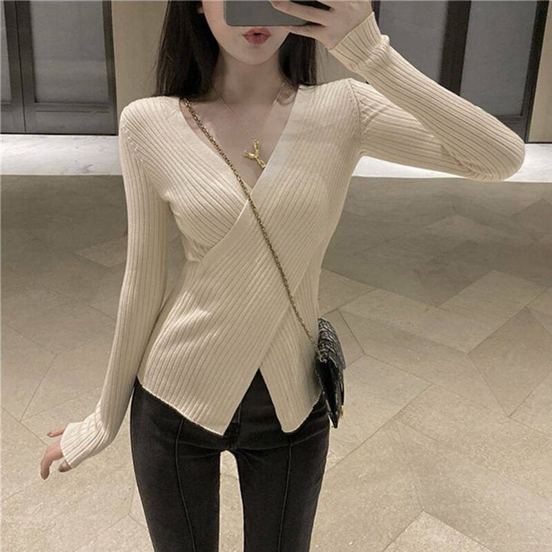 Long Sleeve Korean Pullovers Clothes Ladies Tops Slim Basic Black Sweater