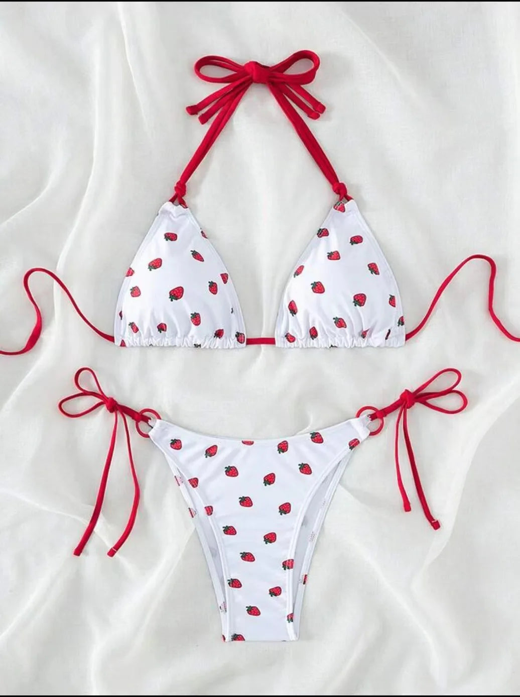 Sexy women cute strawberry print halter string micro bikini sets two pieces swimsuit Swimwear bathing suit beach outfits biquini