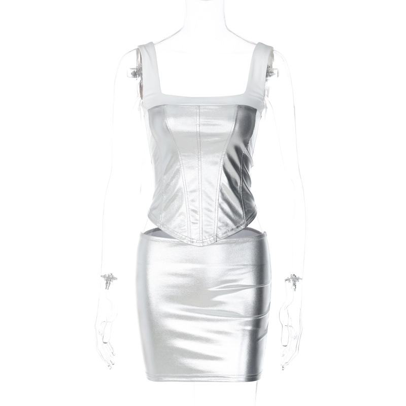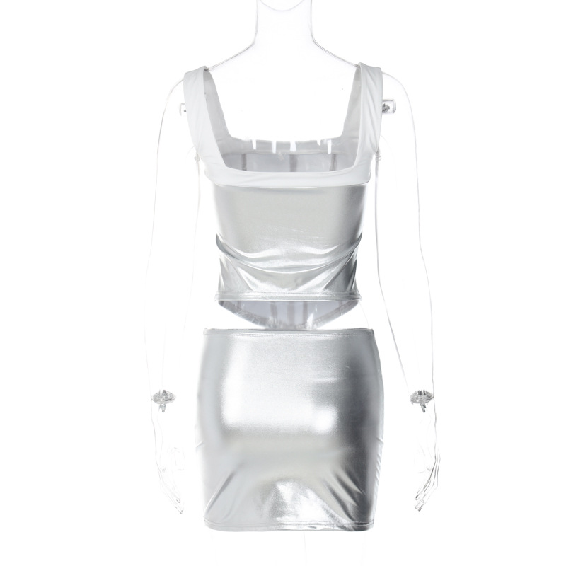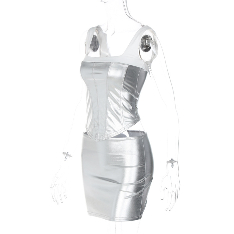 Spring Women Clothes Night Club Sexy Spaghetti Straps Chest Wrap Short Skirt Two Piece Set Suit