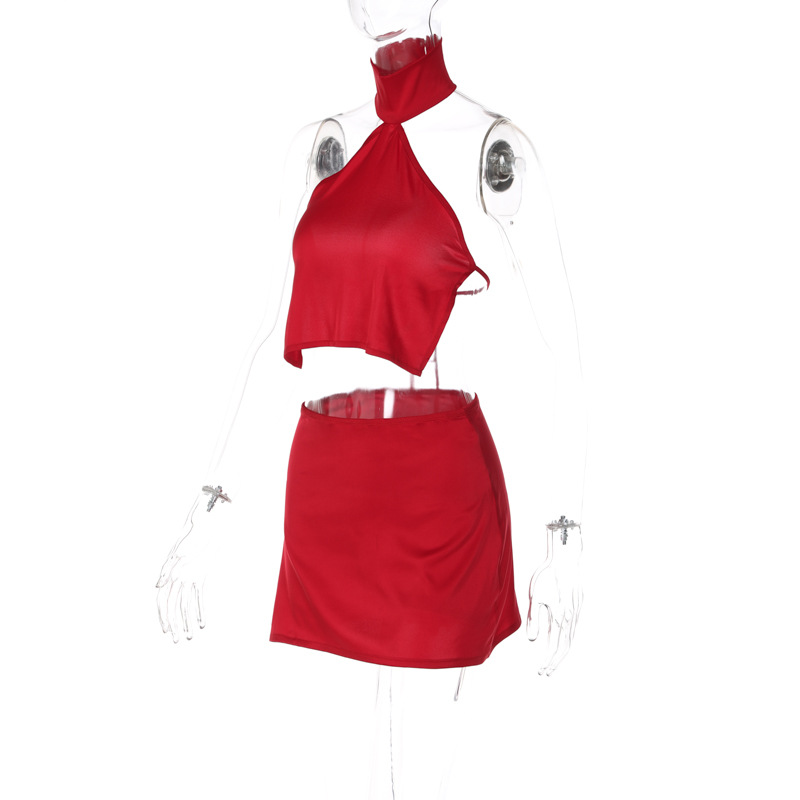 Spring Women Clothing Backless Halter Bandeau Sexy Hip Skirt Two Piece Suit Women