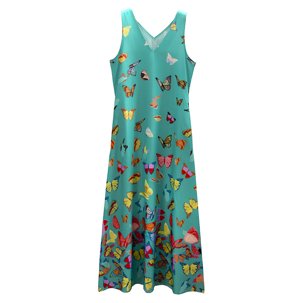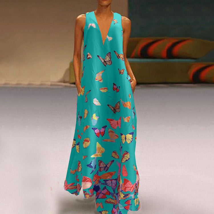 Summer Butterfly Print Bohemian Beach Dress V-neck Sleeveless Maxi Dress plus Size Women Clothing