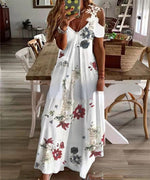 Summer Lace Spaghetti Strap Maxi Dresses Women Bohemian Floral V-Neck Off Shoulder Long Dress Casual Beach Party Robe Vestidos