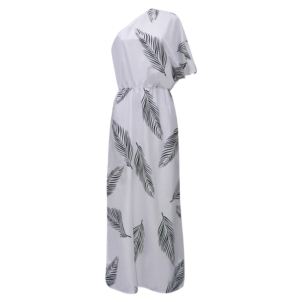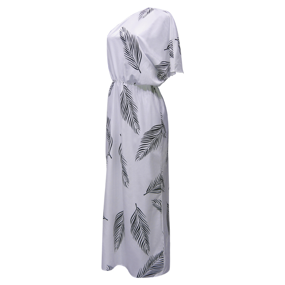 Summer Loose off-Shoulder Waist Trimming Printing Dress Women