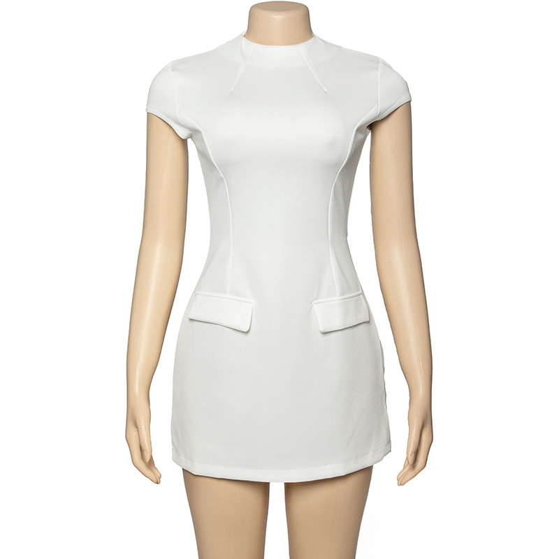 Summer Solid Color Round Neck Slim Fitting Patchwork Short Sleeve Sexy High Waist Short Dress