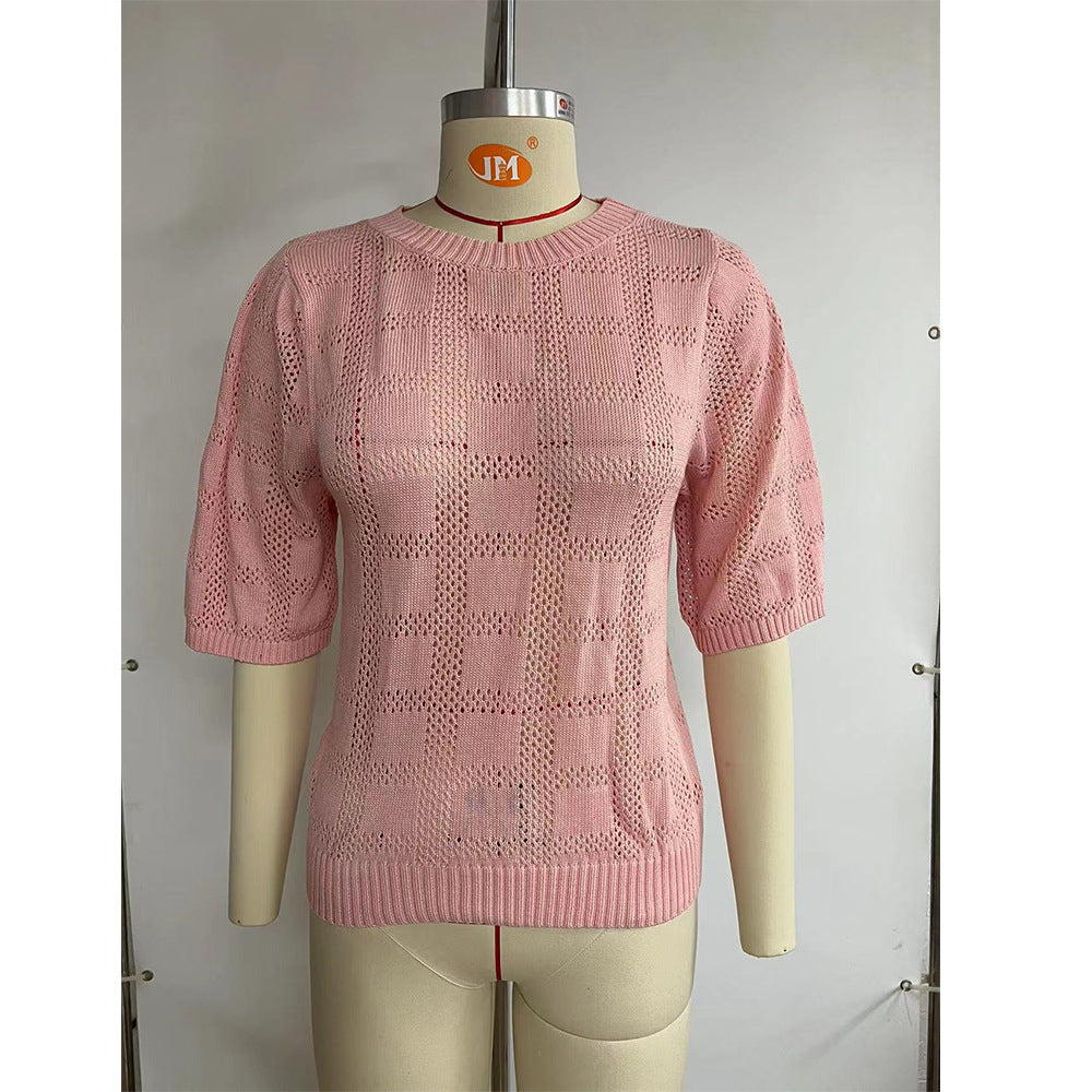 Summer Women Clothing Women ound Neck Hollow Out Sun Protection Clothing Knitted Sweater Blouse