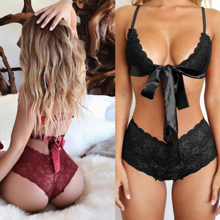 Three-Point Sexy Seduction Lace Cross Lace-up Bra Sexy Lingerie