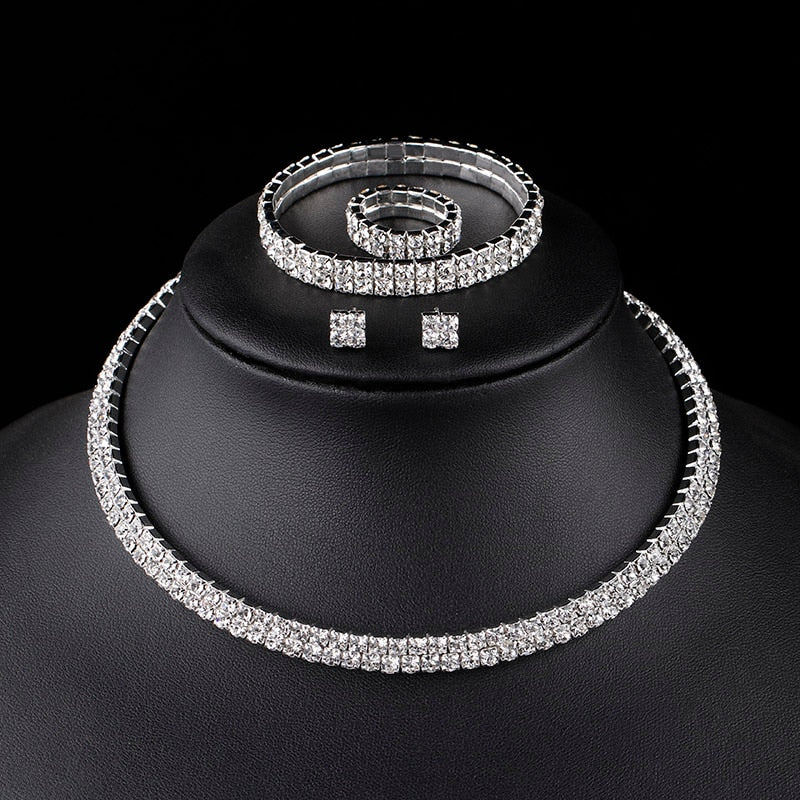 TREAZY Classic Rhinestone Crystal Choker Necklace Earrings and Bracelet African Wedding Jewelry Sets Bridal Wedding Accessories