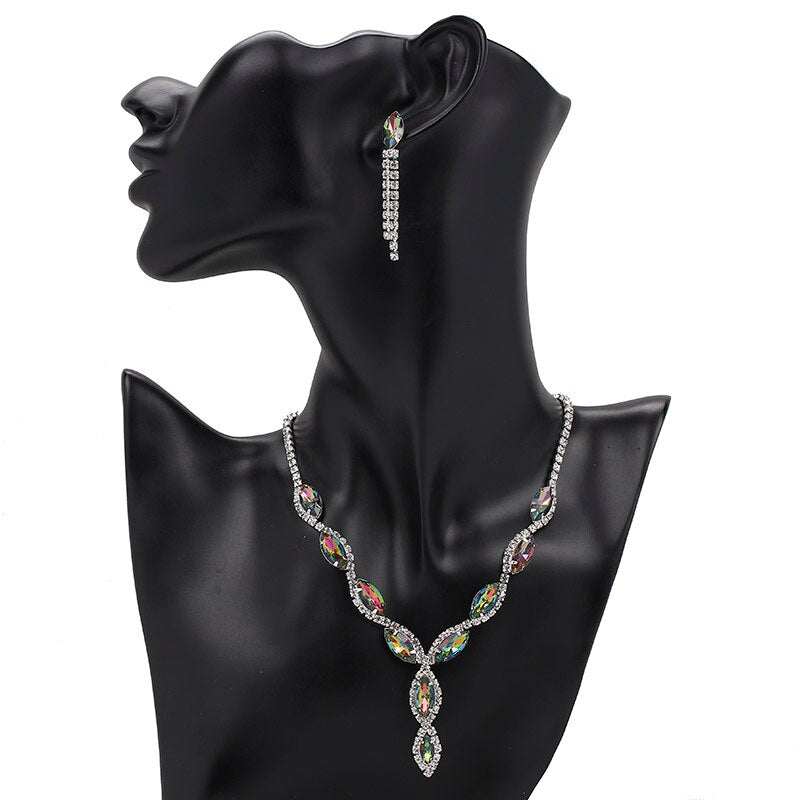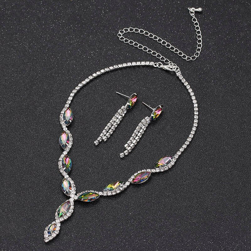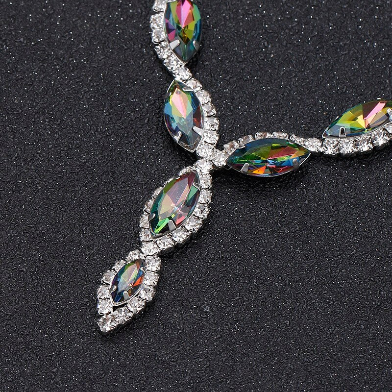 TREAZY Elegant Leaf Tassel Bridal Jewelry Sets Colorful Crystal Rhinestone Necklace Earrings Prom Wedding Jewelry Sets for Women