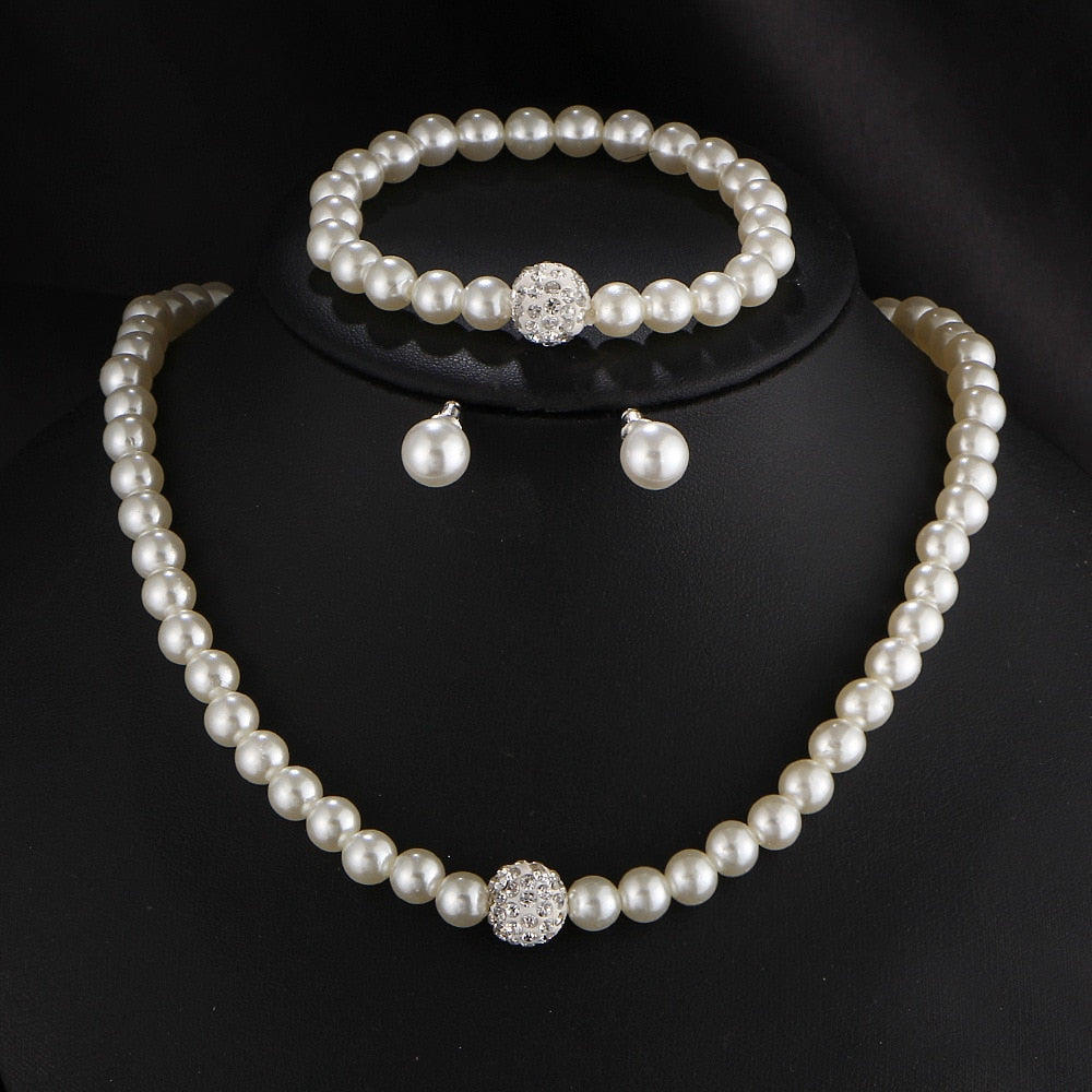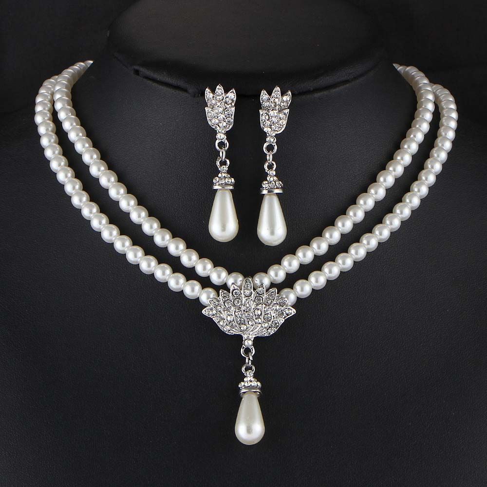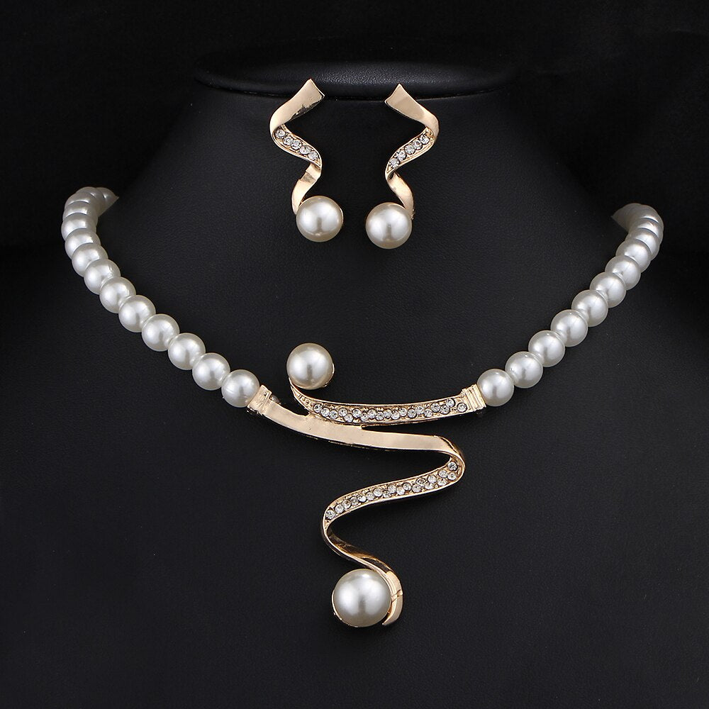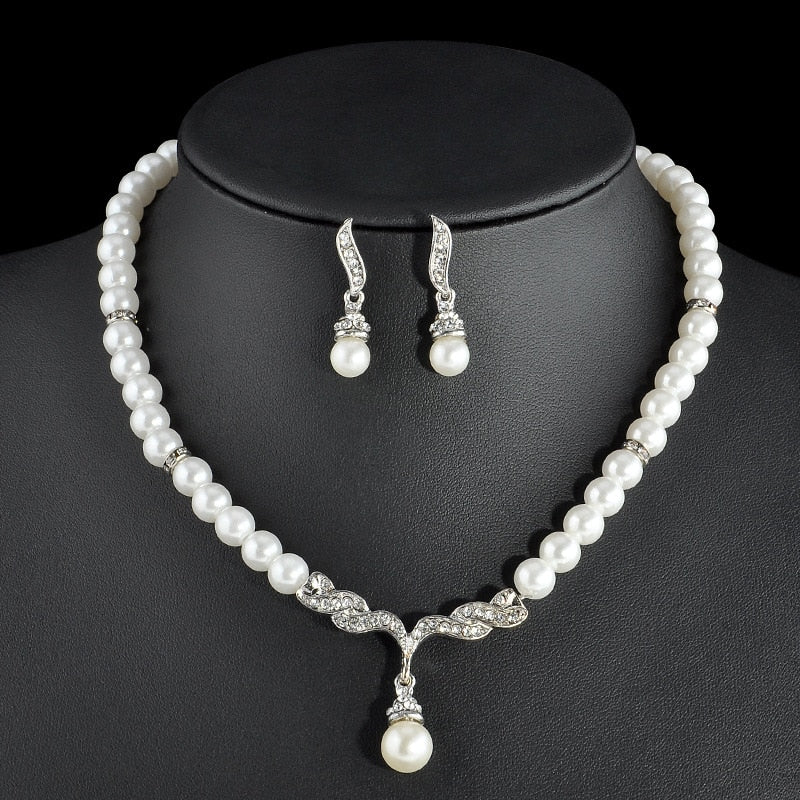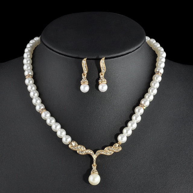 TREAZY Elegant Simulated-pearl Bridal Jewelry Sets Rhinestone Pearl Drop NECKLACE+EARRINGS Wedding Jewelry Sets for Women Gifts