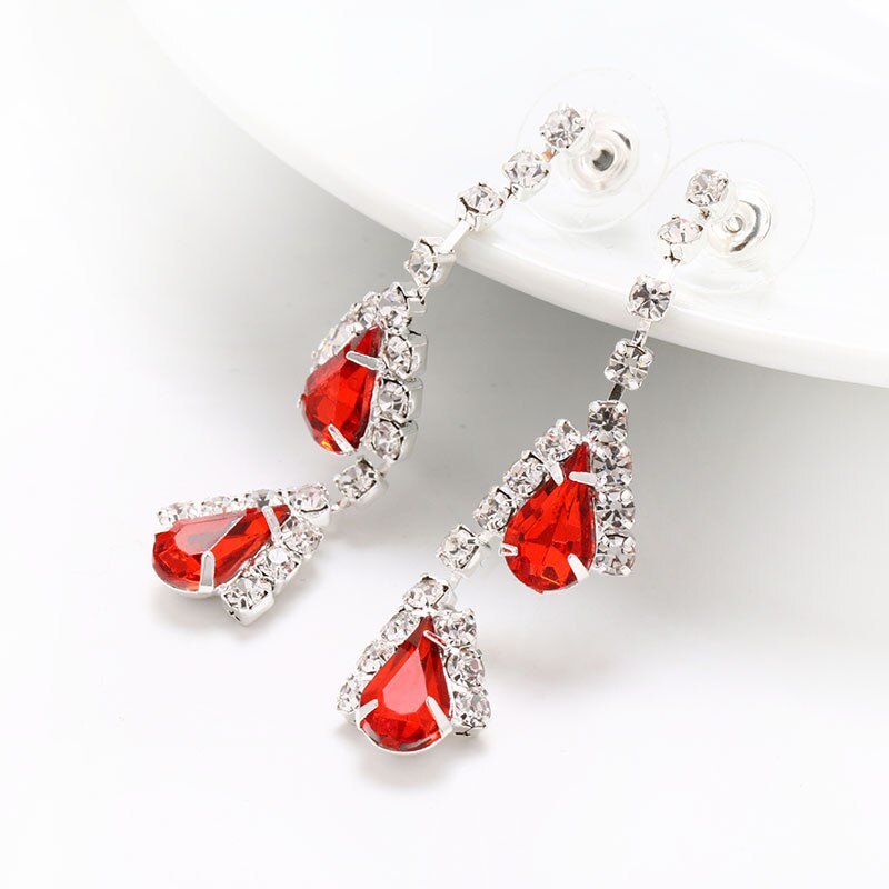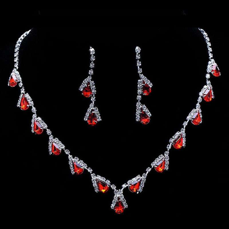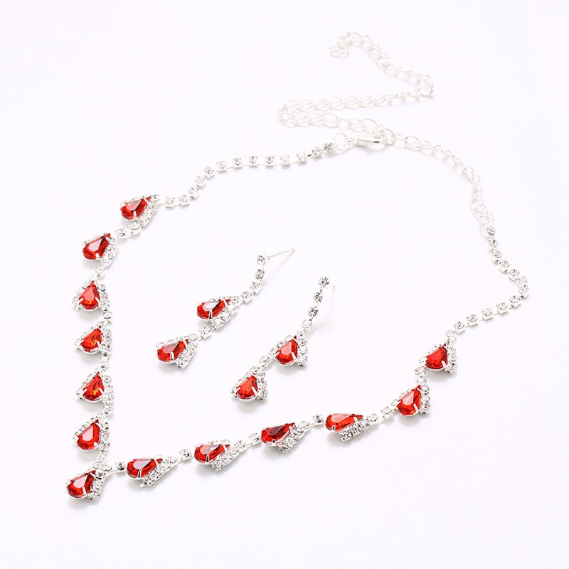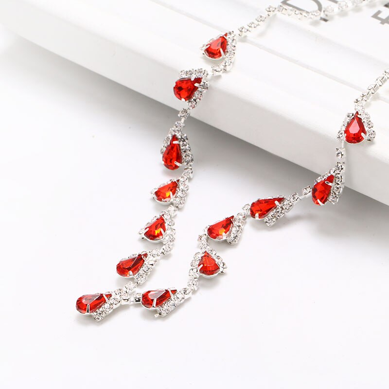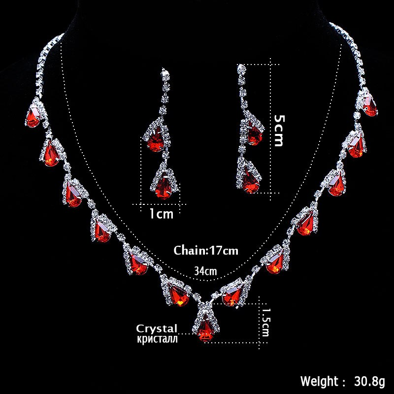TREAZY Fashion Red Crystal Teardrops Bridal Jewelry Set Necklace Earrings Brides Wedding Jewelry Set Party Costume Accessories