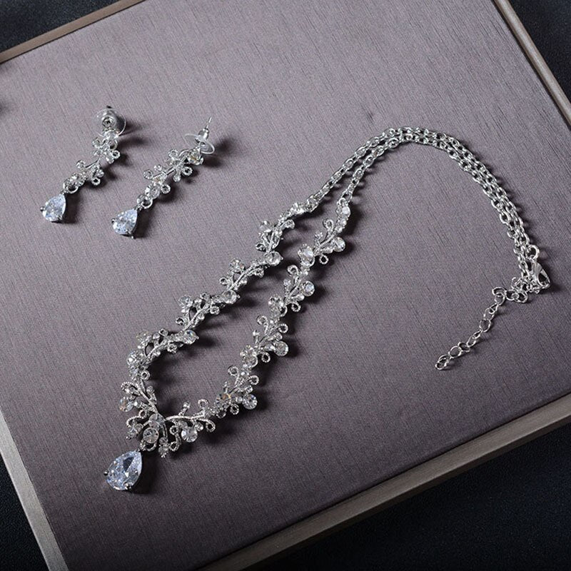 TREAZY Luxury Cubic Zircon Crystal Bridal Jewelry Set Floral Waterdrop Necklace Earrings Set for Women Wedding Party Jewelry Set