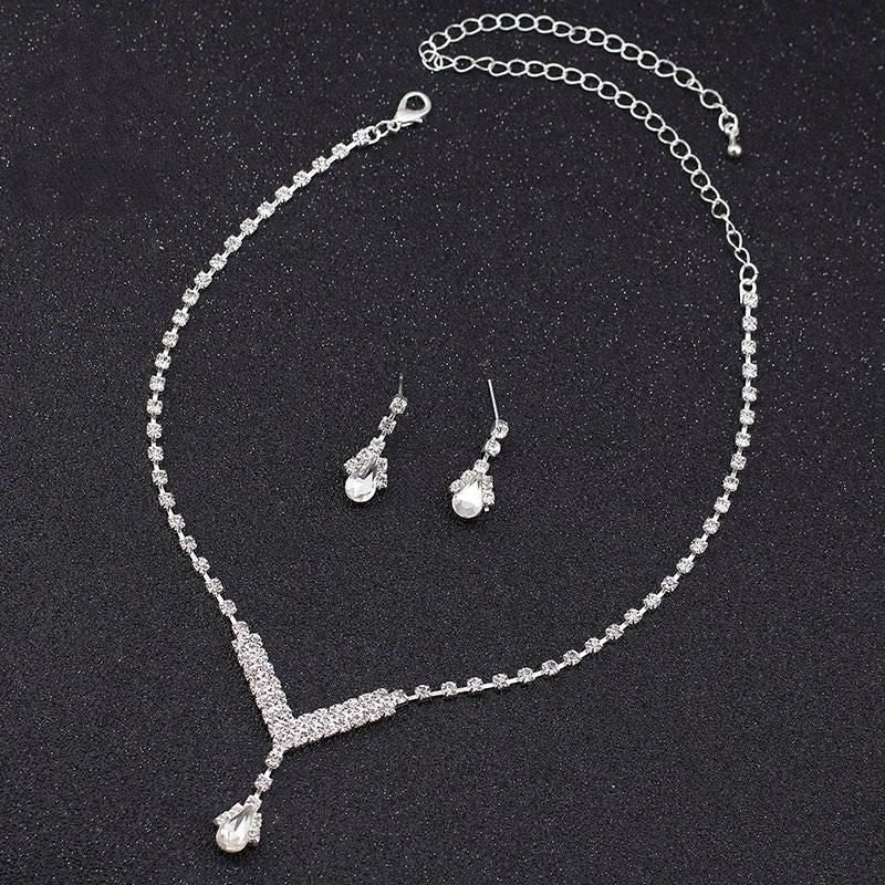 TREAZY Simple V Shape Teardrop Bridal Bridesmaid Jewelry Sets Crystal Fashion Wedding Jewelry Necklace Earrings Set for Women
