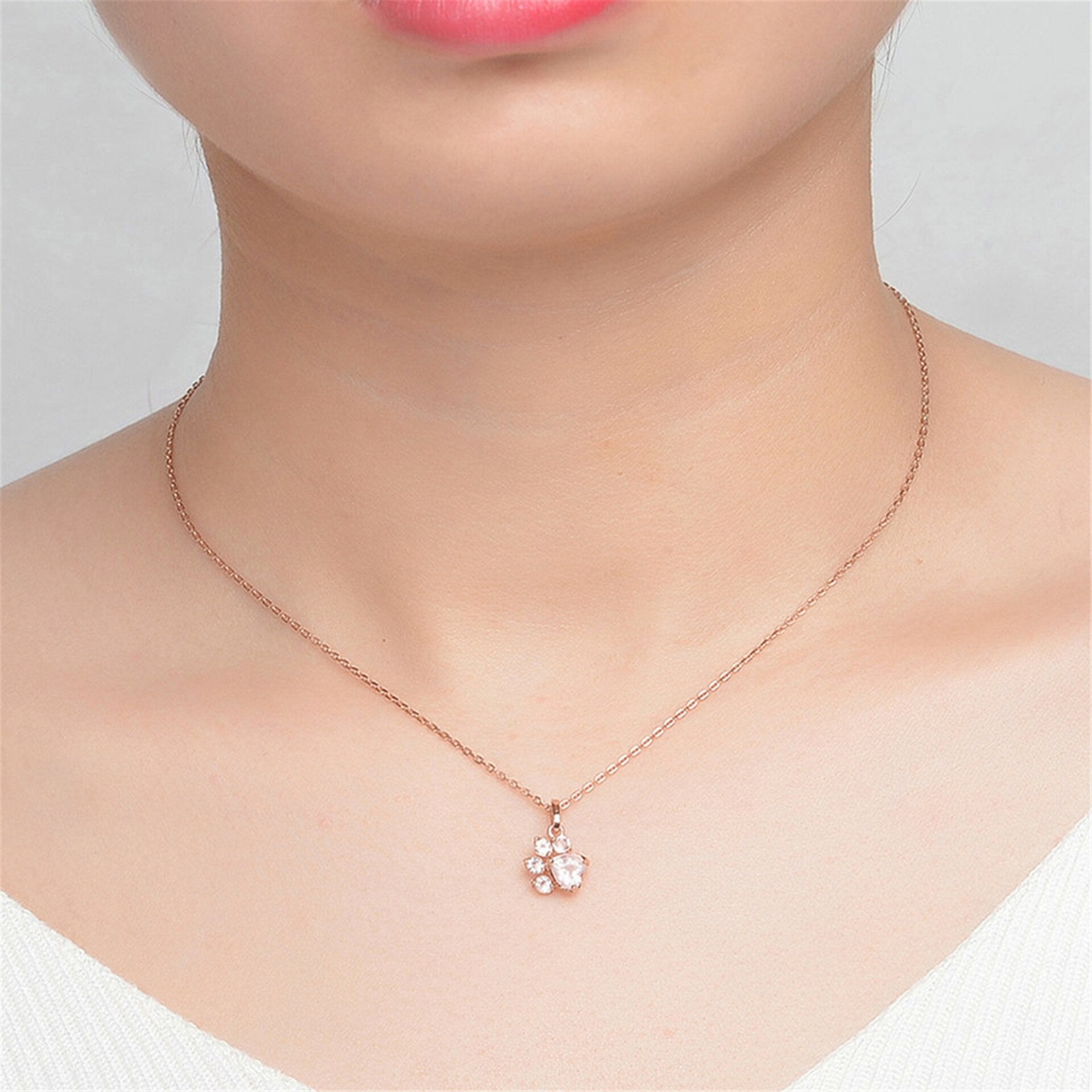 Rose Gold Bear Paw Dog Cat Claw Pink Necklace