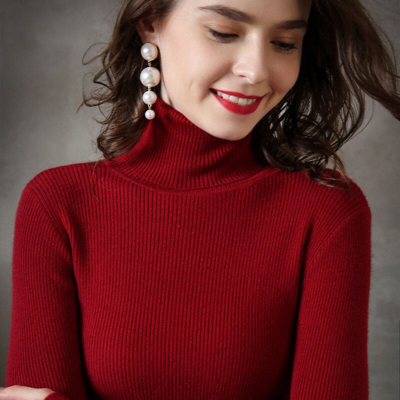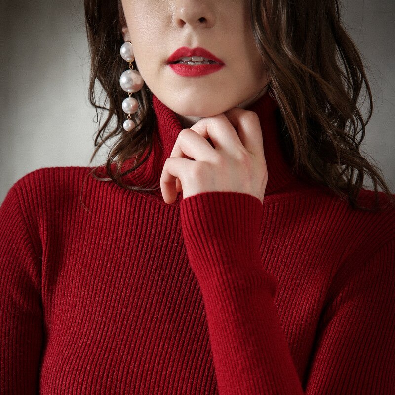 Rib knit foldover Turtleneck pull Sweater