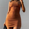 This stunning mini dress is ideal for summer. It’s sleeveless, the pattern is solid. The dress can be worn on any occasion, especially at elegant parties and gatherings. The material of the dress is spandex and cotton.