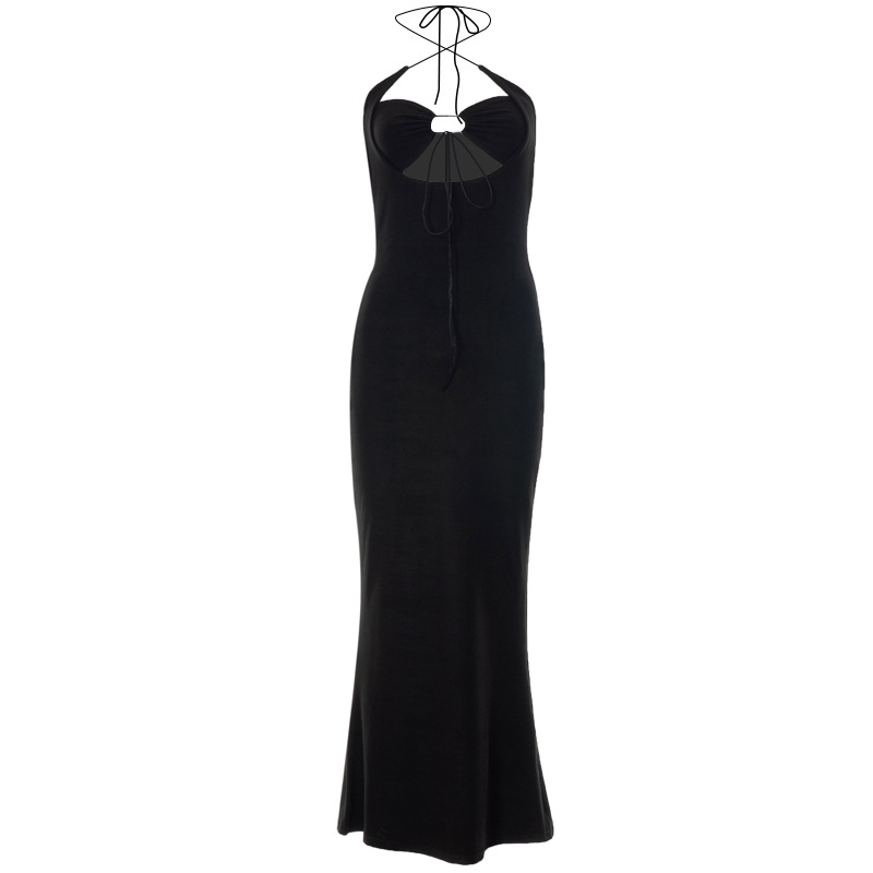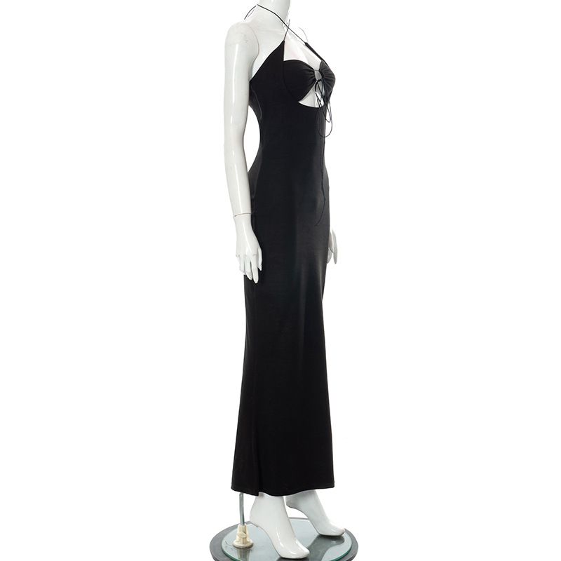Women Clothing 2022 Spring and Summer New Socialite Solid Color Lace-up Halterneck Hollow Dress
