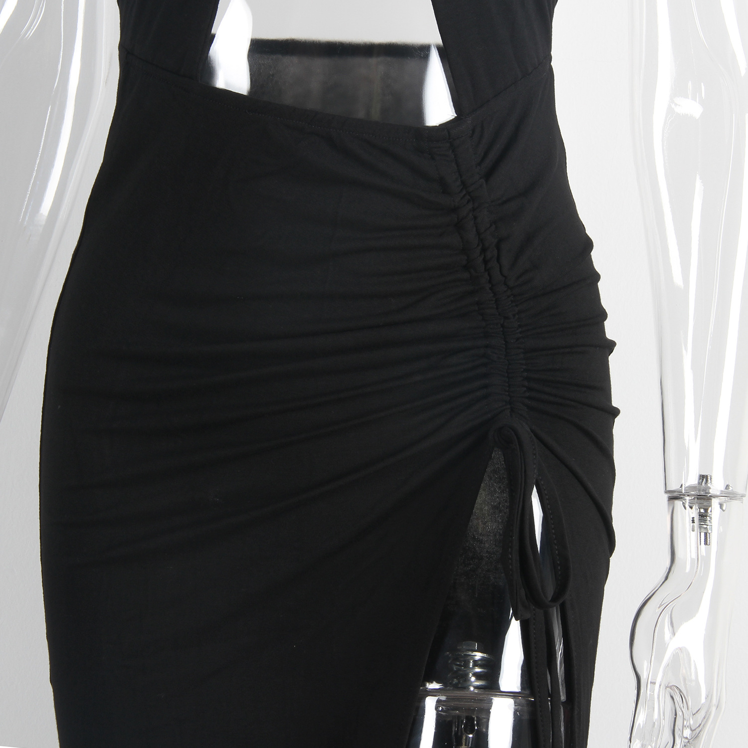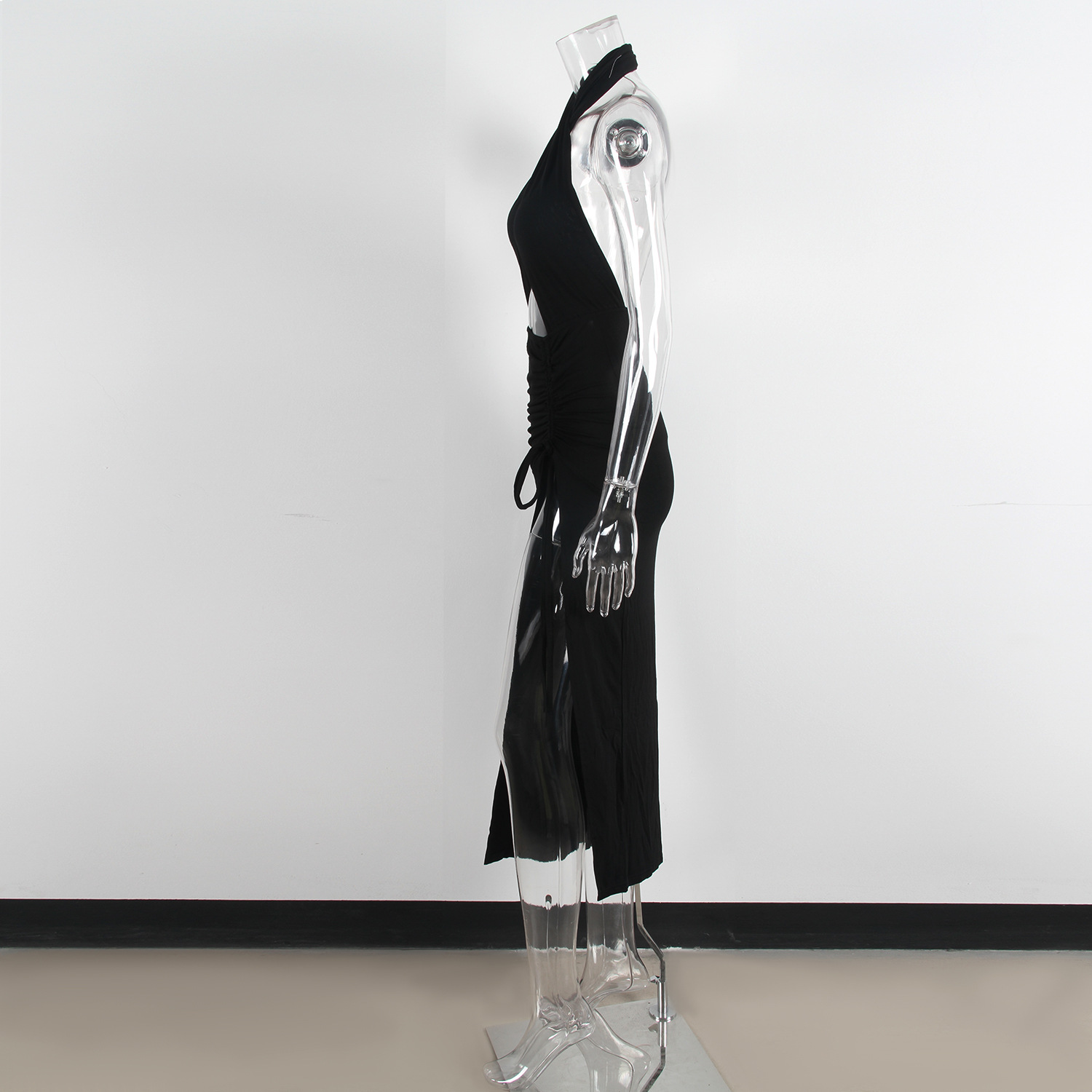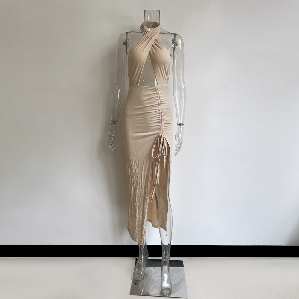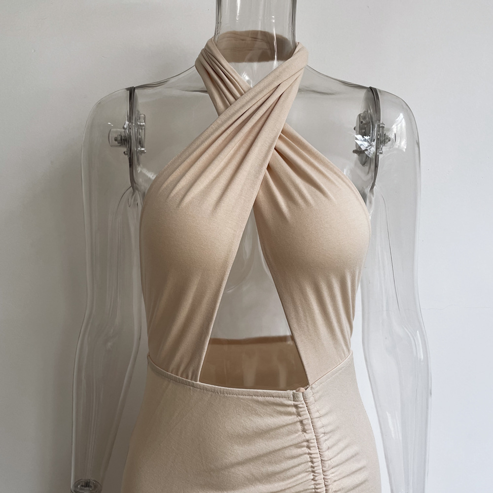 Women Clothing Chest Cross-Halterneck Sexy Dress Backless Solid Color Party Dress