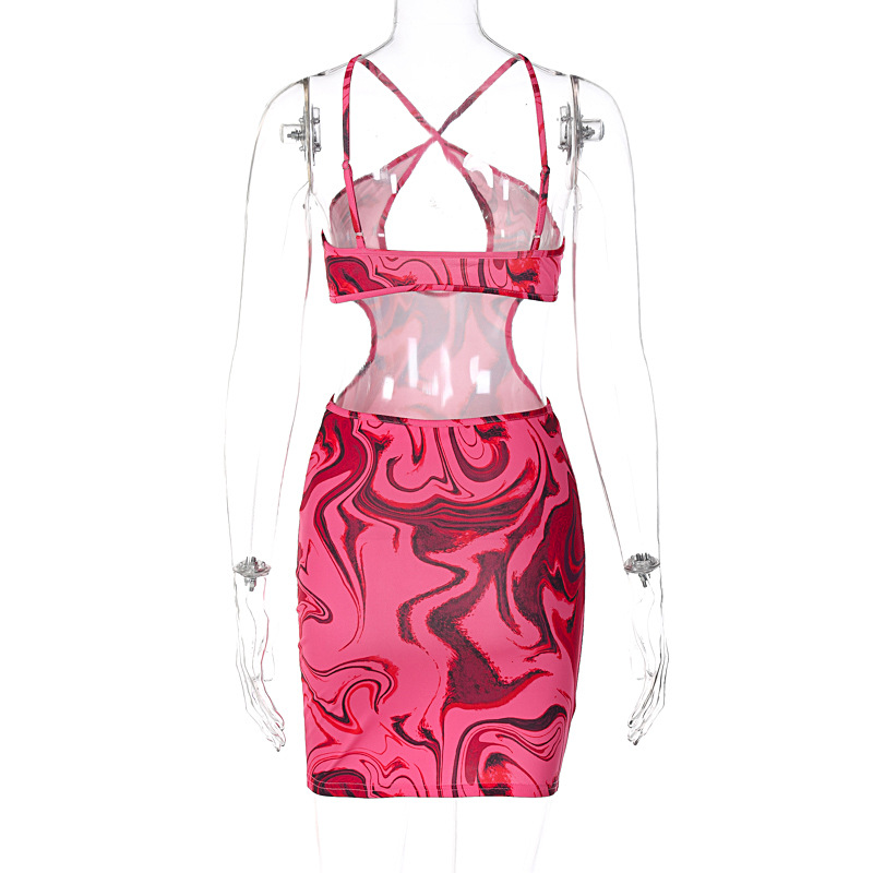 Women Clothing Spring Criss Cross Sexy Print Hollow Out Cutout Backless Sheath Dress