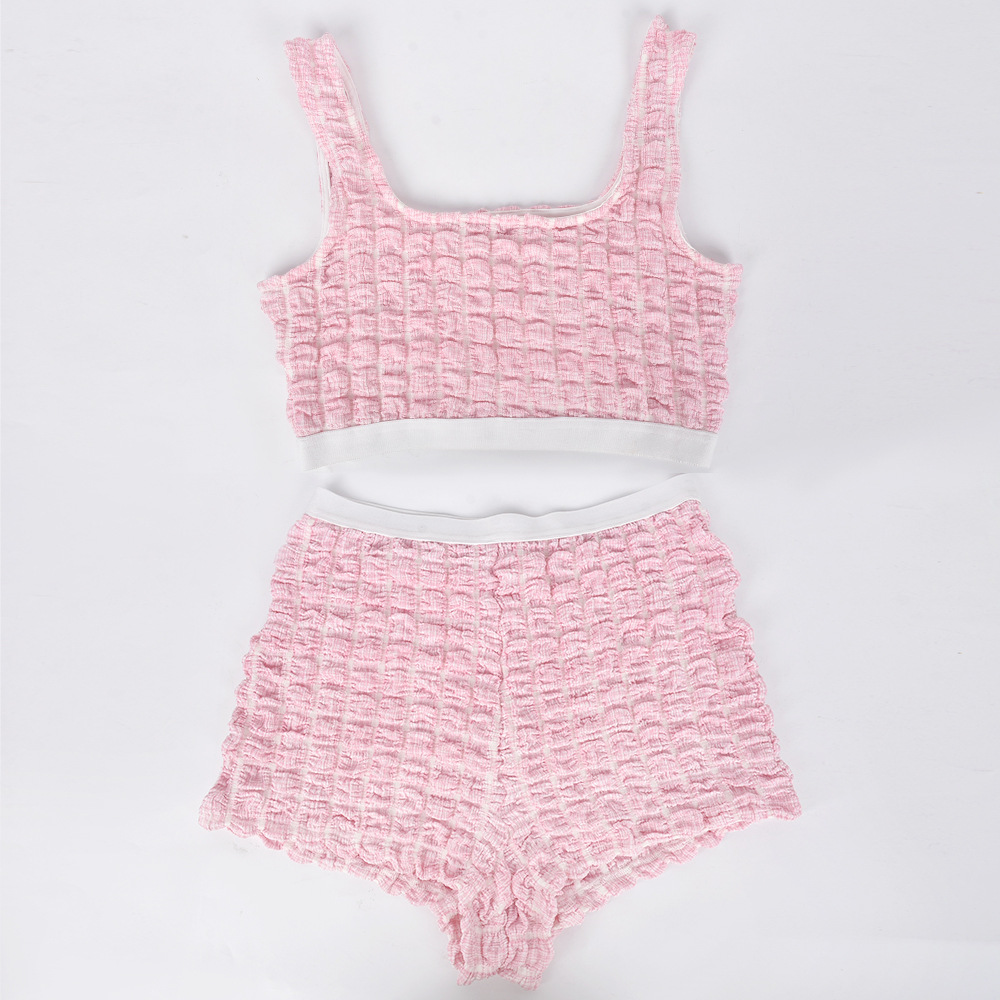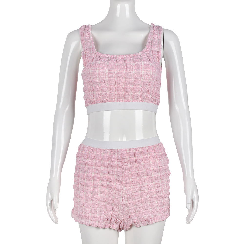 Women Clothing Spring Popcorn Exposed Cropped Sexy Blouse Pants