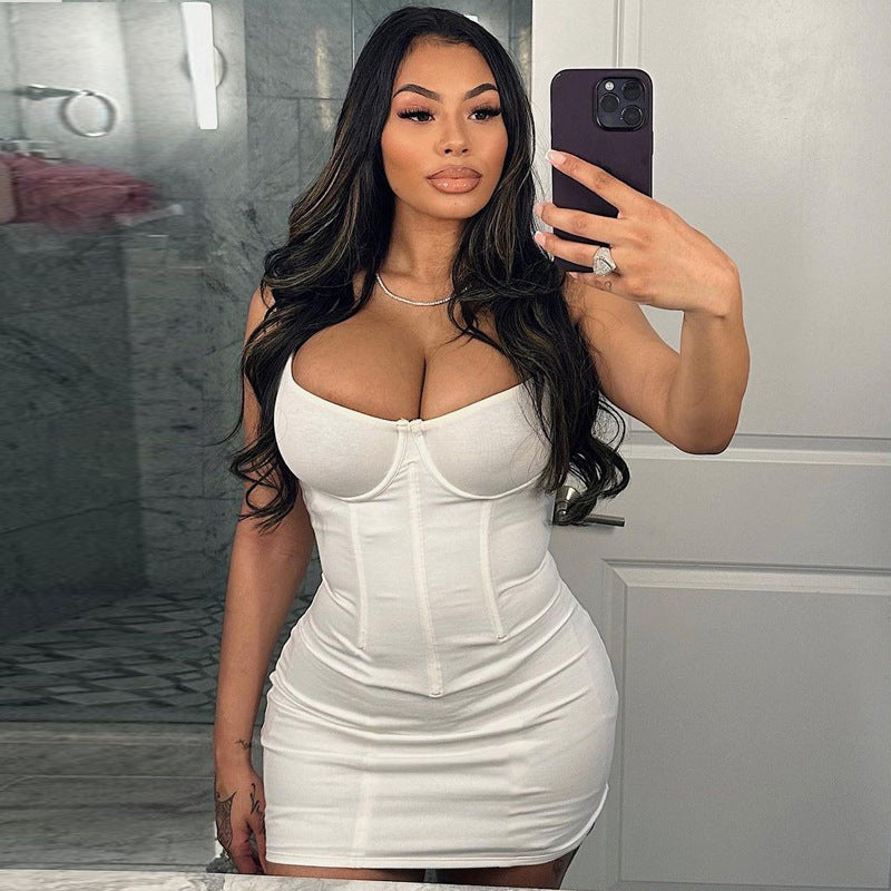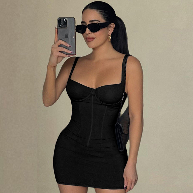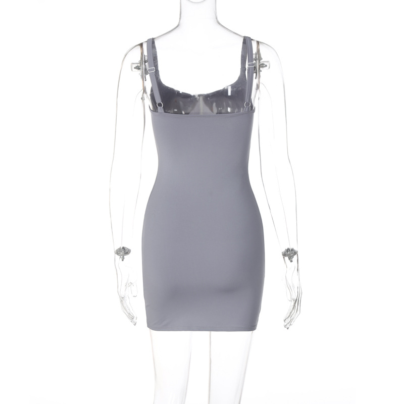 Women Clothing Summer Sexy Backless Slim Fit Solid Color Strap Dress