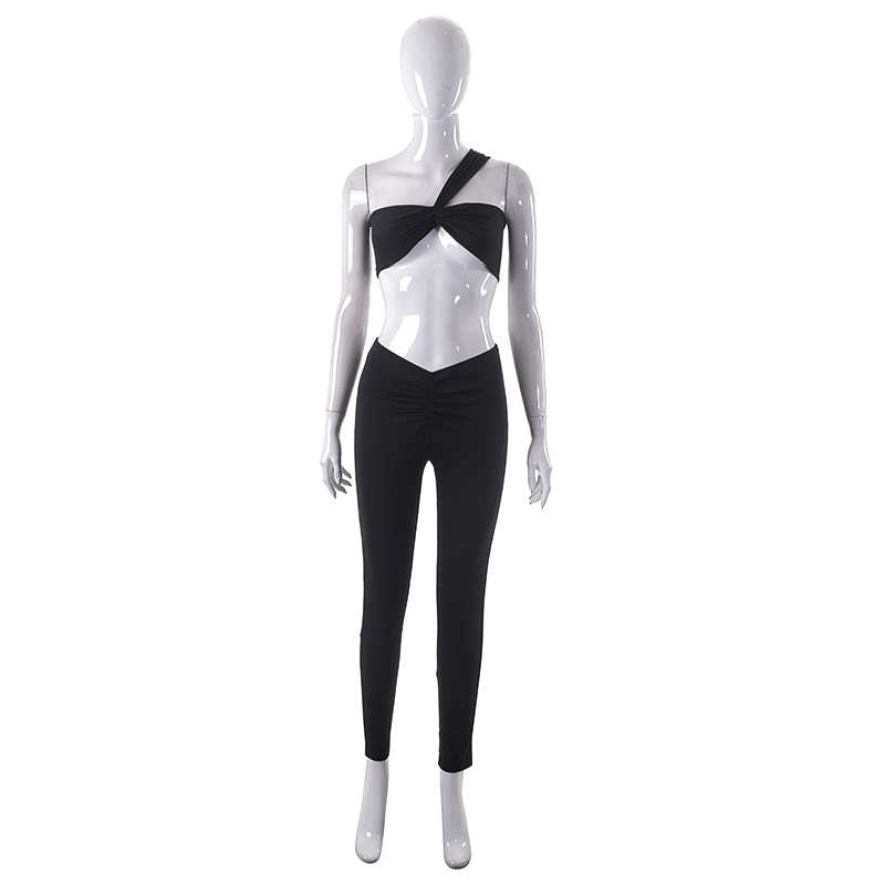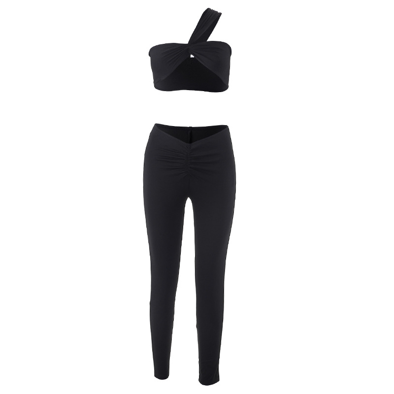 Women Clothing Women Clothing Sexy Oblique Shoulder Tank Top Tight Pants Casual Suit
