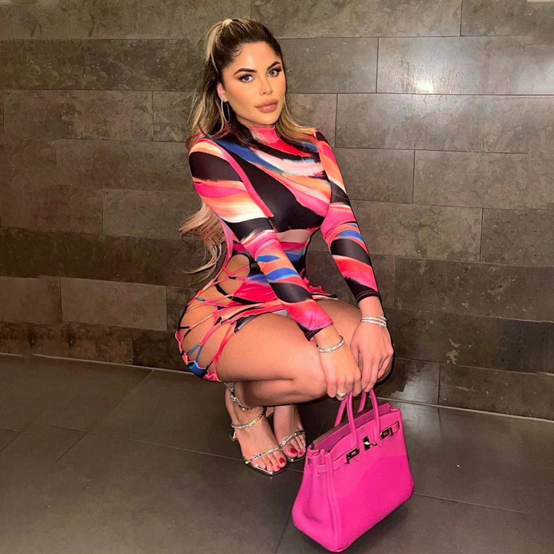 Women Dress Autumn New Tie Dyed Printed Side Hollow Sexy Sheath Dress for Women