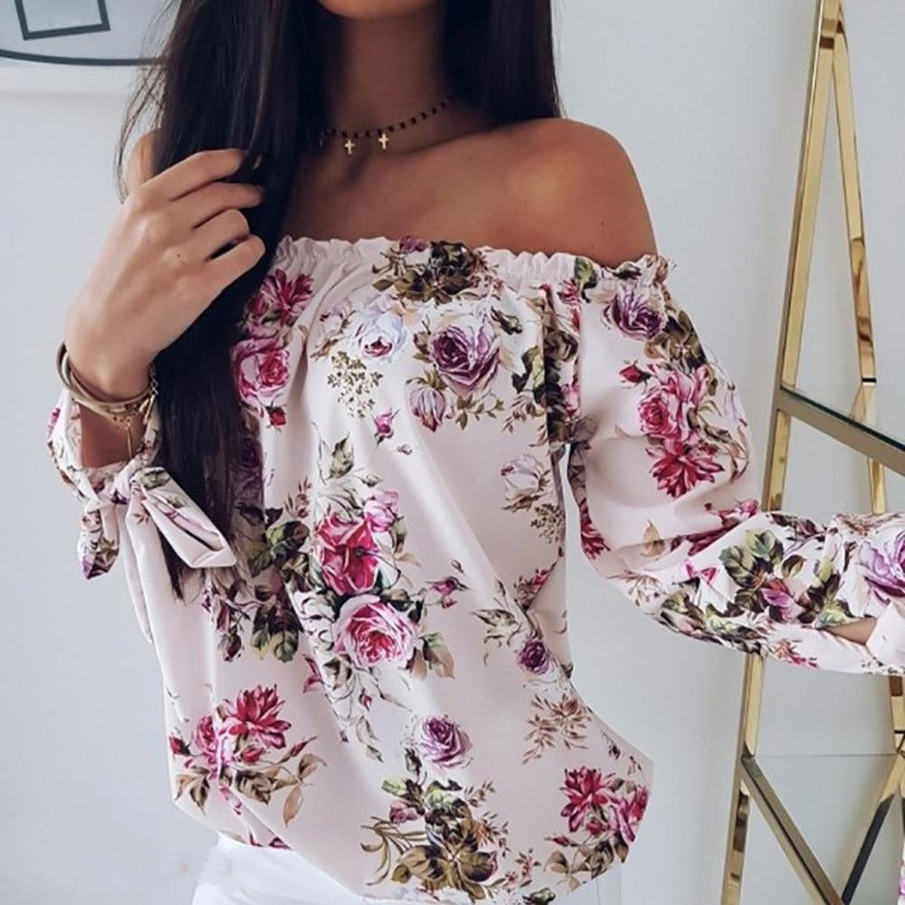 Off Shoulder elegant Floral Shirt Casual Blouse Tops
