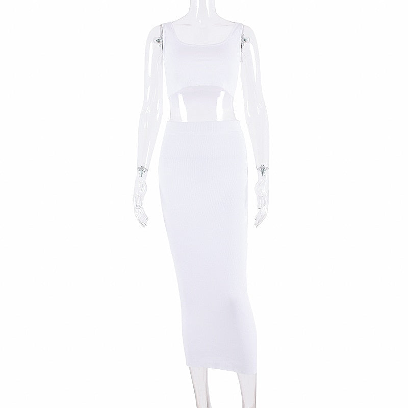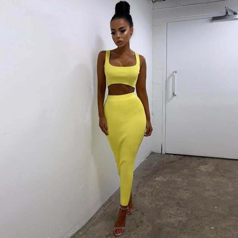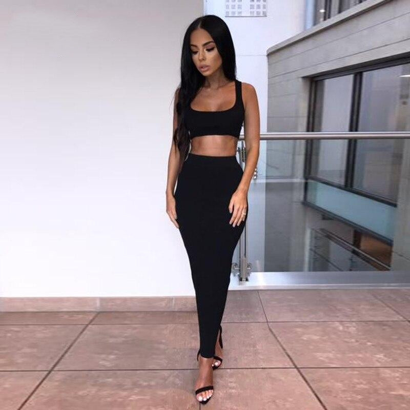 women ribbed knit two piece set long skirt crop tank top sexy elegant festival matching co ord clothes party 2019 summer outfits