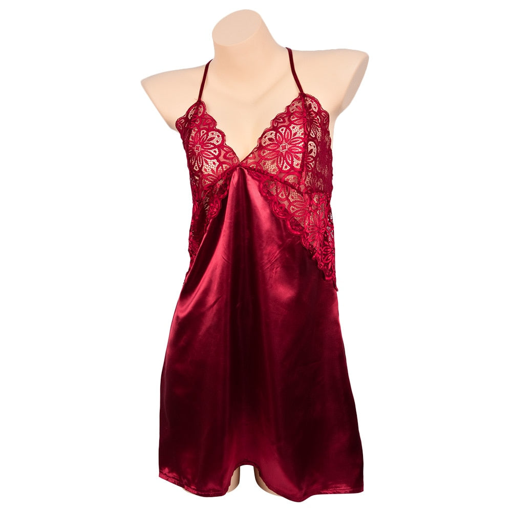 Silk Satin sling dress mini dress Night Gown Sleeveless Nightdress Lace V-neck Nighties Sleepwear
