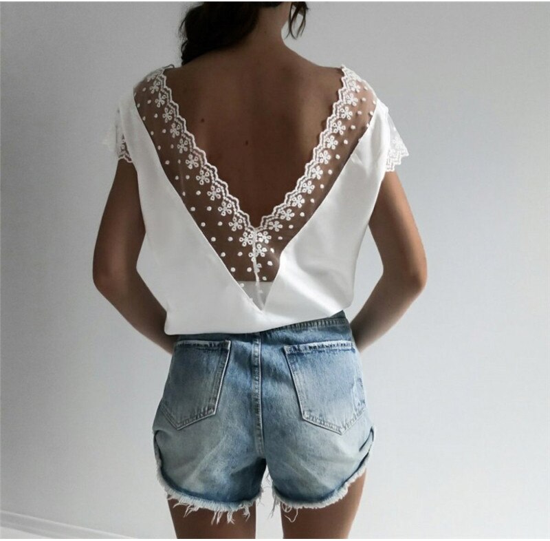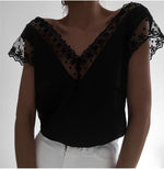 Short Sleeve Lace Tops V Neck Harajuku Blouse