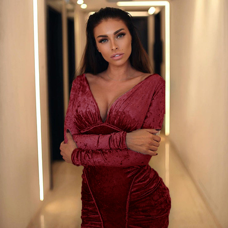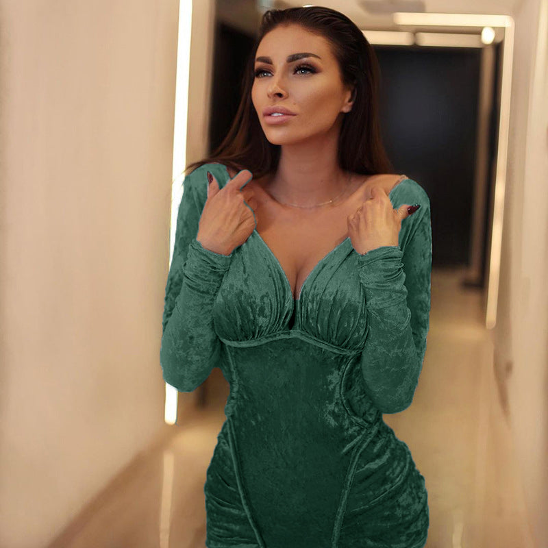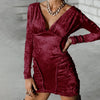 Womens Sexy Velvet Bodycon Dress Rushed Long Sleeve Mini Party Cocktail Dress