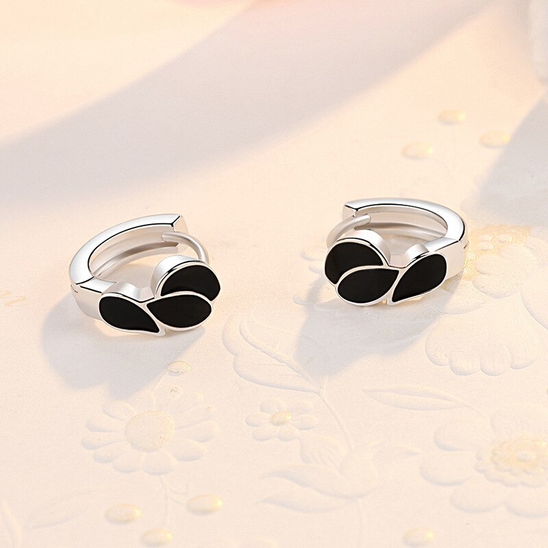 925 Sterling Silver Black Zircon Leaf Hoop Earring